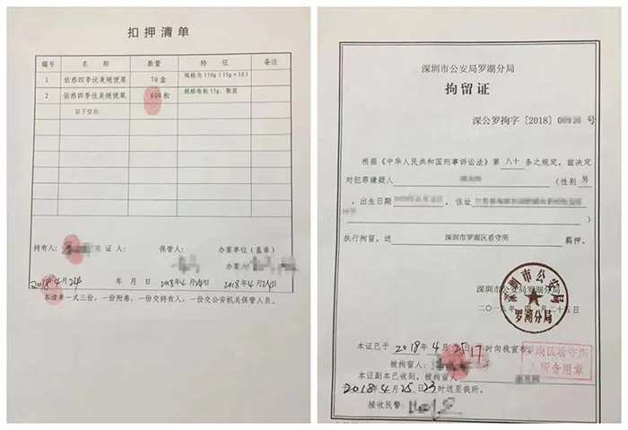 2018年4月四季優(yōu)美稽查部發(fā)現(xiàn)某電商店鋪以低于正常價格銷售隨便果且月銷量達數(shù)萬盒。針對此異常情況,公司稽查部遂在該店鋪購買多個批次隨便果并送往工廠質檢部門鑒定,結果均為假冒偽劣產品。報案后,深圳市羅湖警方在偵查并核實情況后展開抓捕行動,該售假窩點的負責人潘某落網,該窩點當日被查封,并當場繳獲大量待發(fā)出的仿冒產品存貨。潘某于次日被羈押至看守所拘留。后被判處有期徒刑4年6個月,并依法處以罰金。