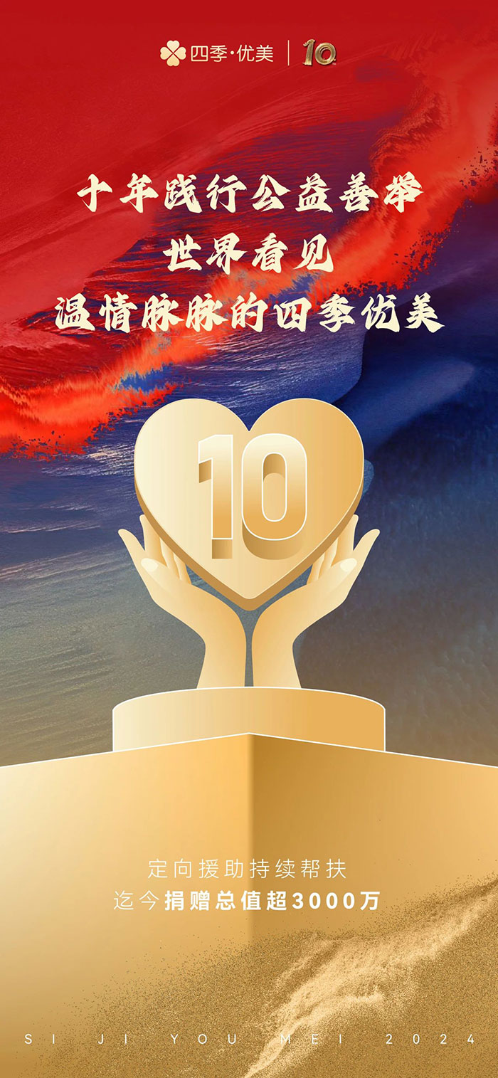 一幀幀記憶連綴,便成了歲月沉淀的況味:十年的貼地飛行,盡管無法避免摩擦感,但向前、向美、向善始終是我們的主旋律。這一刻,是作別,也是啟程,伴隨著深情的回眸,耳畔依然是篤定的鏗鏘足音:站在新的起跑點上,四季優美將繼續攜信念行走山海,以奮斗回應時代。歷經歲月打磨的四季優美將以更自信、更青春、更務實的姿態,與世界同頻共進。
